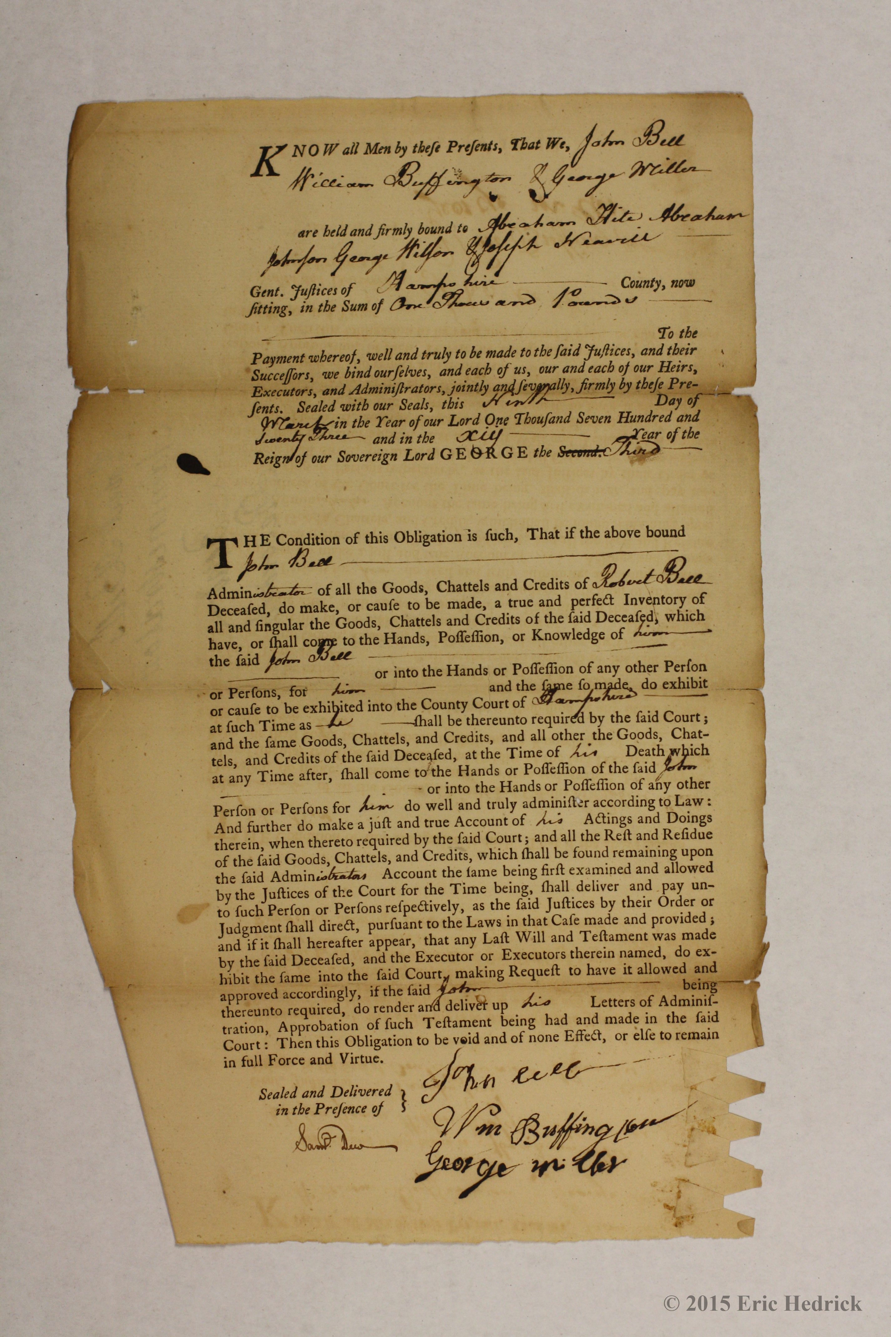 HISTORICAL DOCUMENTS FROM HAMPSHIRE CO., VA (WV)